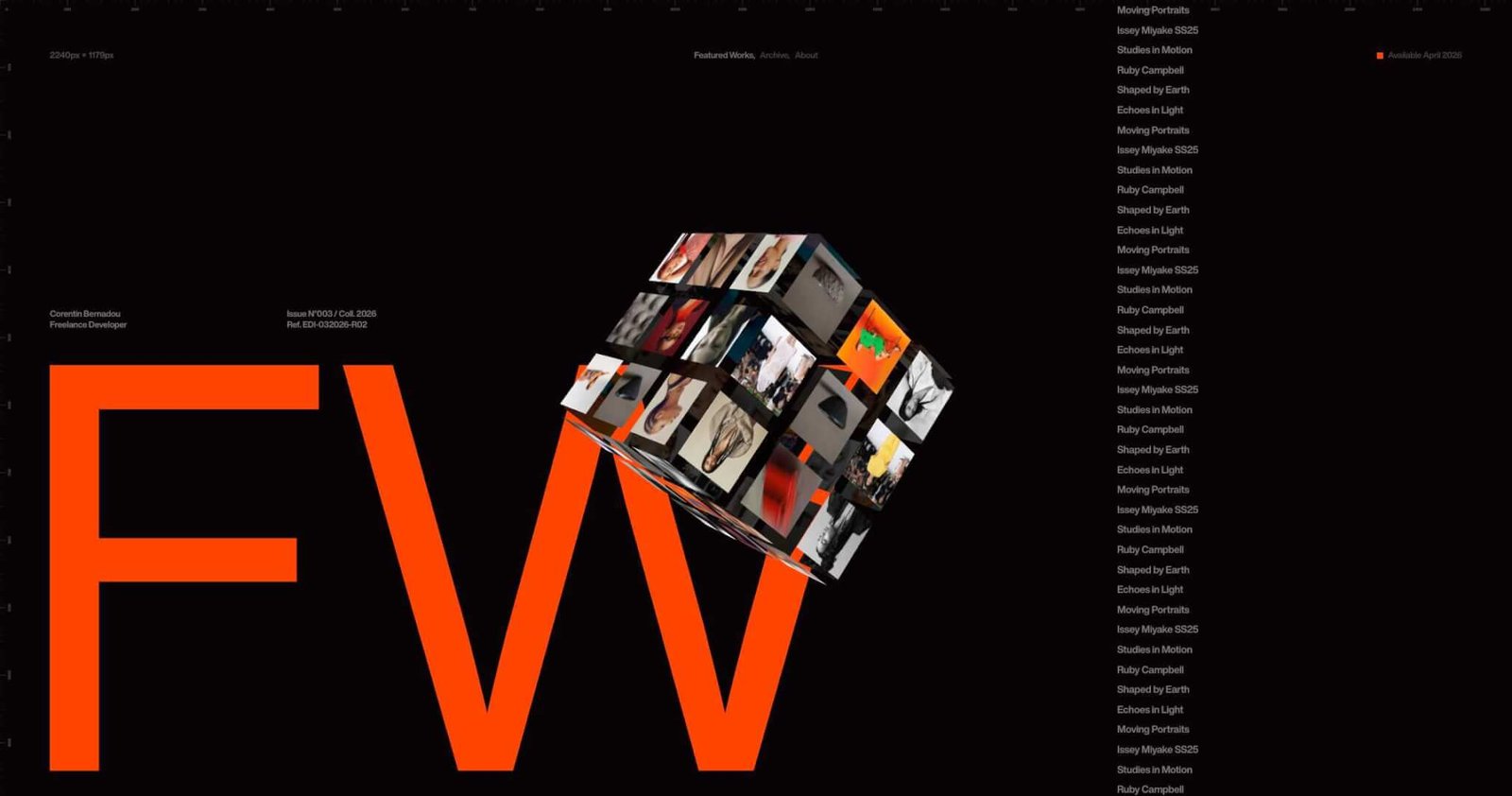 Freelance creative developer Corentin Bernadou crafts expressive, animation-driven interactive experiences with clean visuals and precise motion.